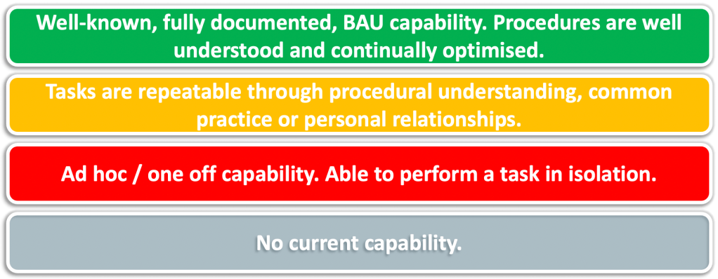 We will assess your organisations existing capabilities and provide you with a definitive view of your maturity to date. This is often a little disheartening at first, but by knowing where your genuine weaknesses lie you can do something about it. Our assessment is designed with transparency in mind. We will be full and frank, provide the evidence to back up our statements, but moreover put you in a position to drive differential change.